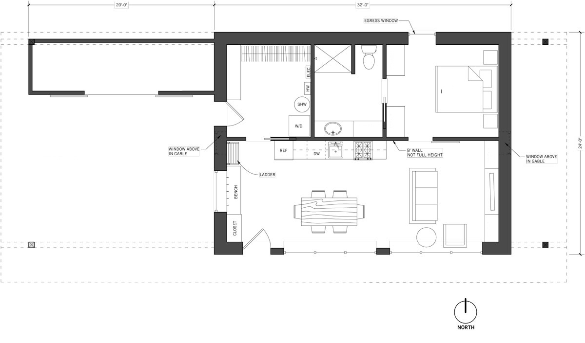 The home is extremely energy-efficient and, with a modest solar electric system, will be net-zero ready. If additional solar panels are installed on the existing home, the project has the potential to actually lower the overall carbon footprint of the entire lot from current levels. The home is designed to meet the Passive House standard and conforms to the Passive House Planning Package to model annual energy usage. It will be extremely well insulated with 8” of insulation under the slab, 15” of wall insulation, and 24” of roof insulation. Windows will all be Passive House certified triple-glazed and the house will be extremely airtight.